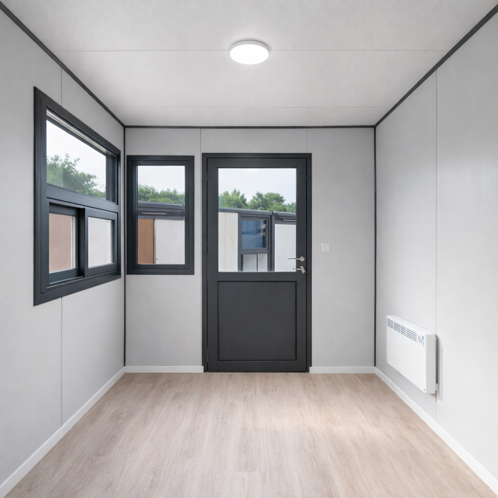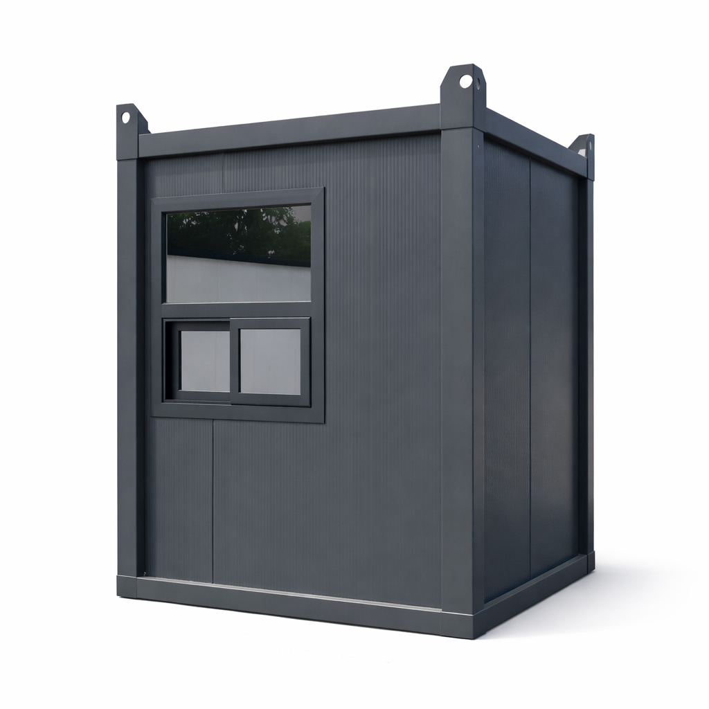 Cabina de pază modulară 1.35 × 1.35 × 2.70 m este potrivită pentru parcări zone industriale șantiere ansambluri rezidențiale depozite logistice sau spații comerciale unde este necesar un punct de control acces compact și eficient.