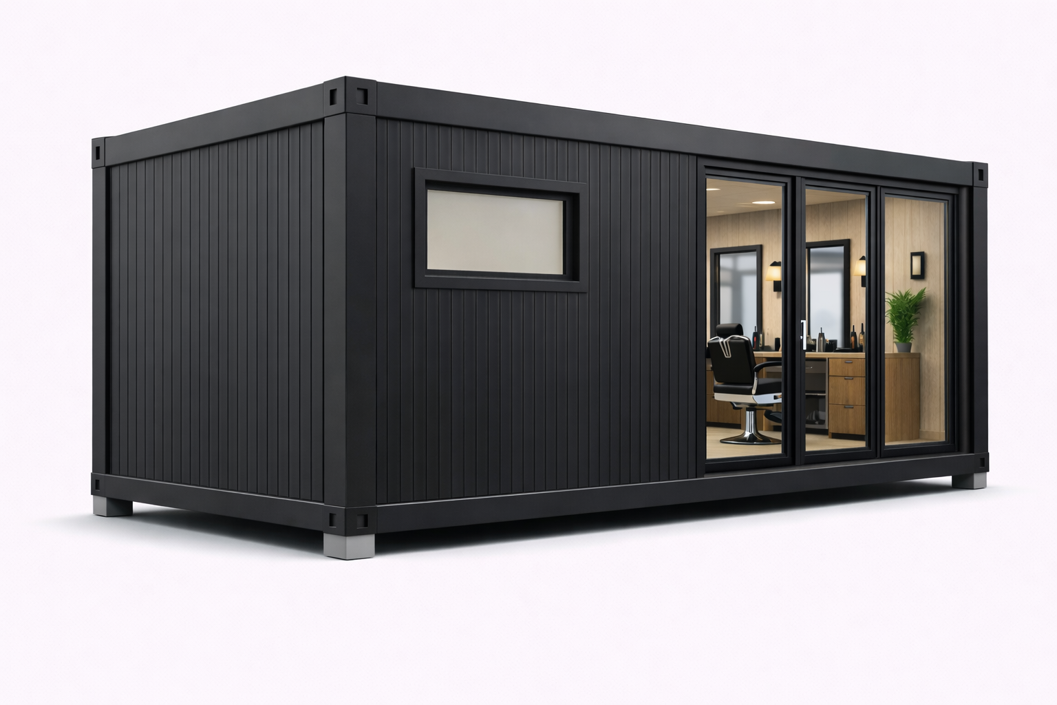 Designul compact dar eficient transforma containerul frizerie modular intr o solutie practica pentru antreprenorii care doresc sa deschida rapid un salon modern. Aspectul contemporan si flexibilitatea constructiei permit adaptarea la diferite concepte de barber shop sau frizerie.