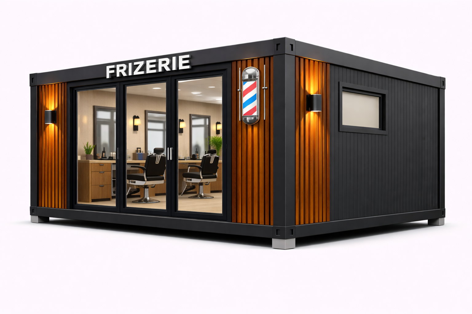 Containerul frizerie modular 4 metri reprezinta o solutie moderna eficienta si flexibila pentru deschiderea rapida a unui salon de frizerie sau barber shop. Constructiile modulare realizate din containere sunt tot mai populare in domeniul serviciilor deoarece permit crearea unui spatiu functional intr un timp foarte scurt cu costuri optimizate si design modern.
